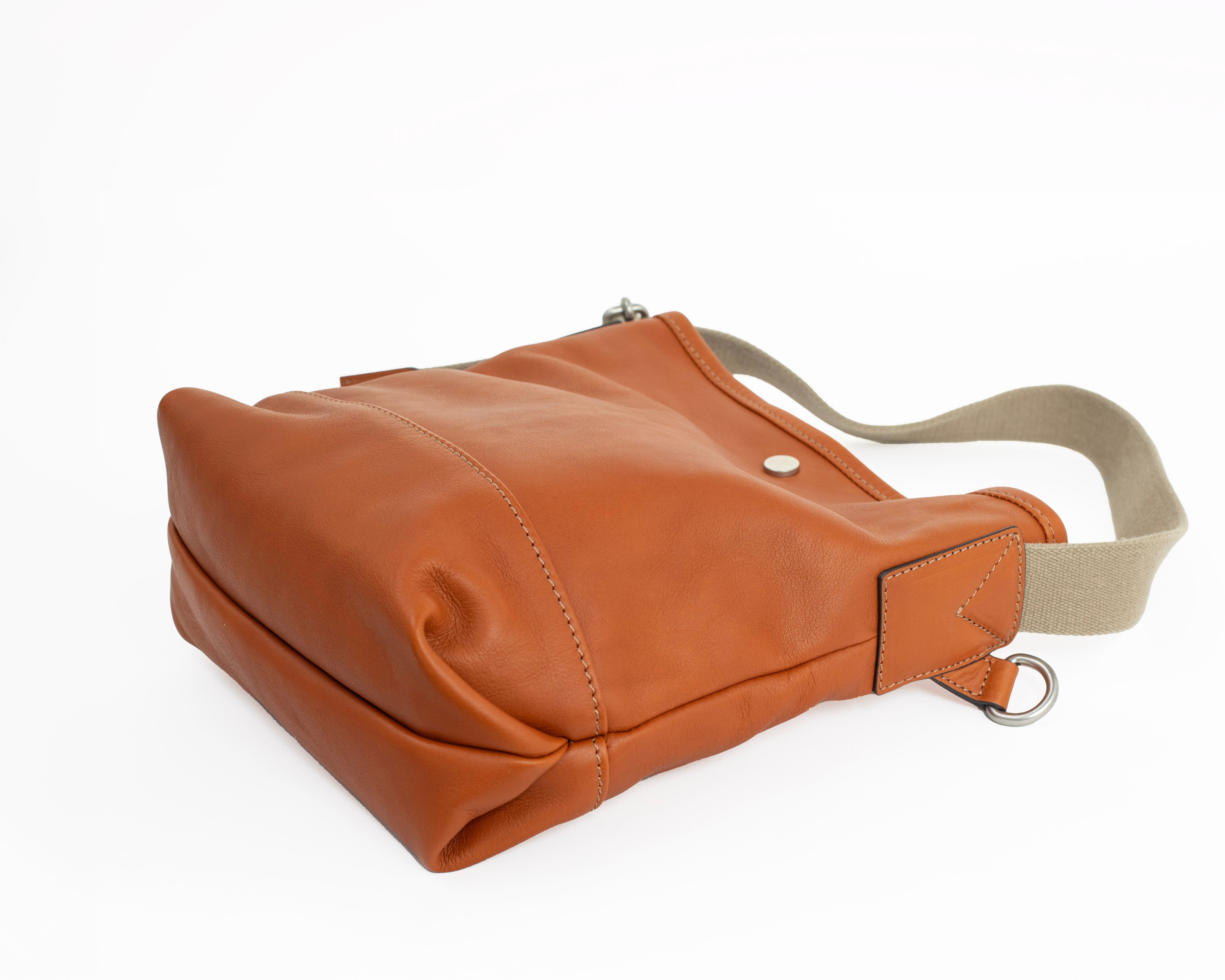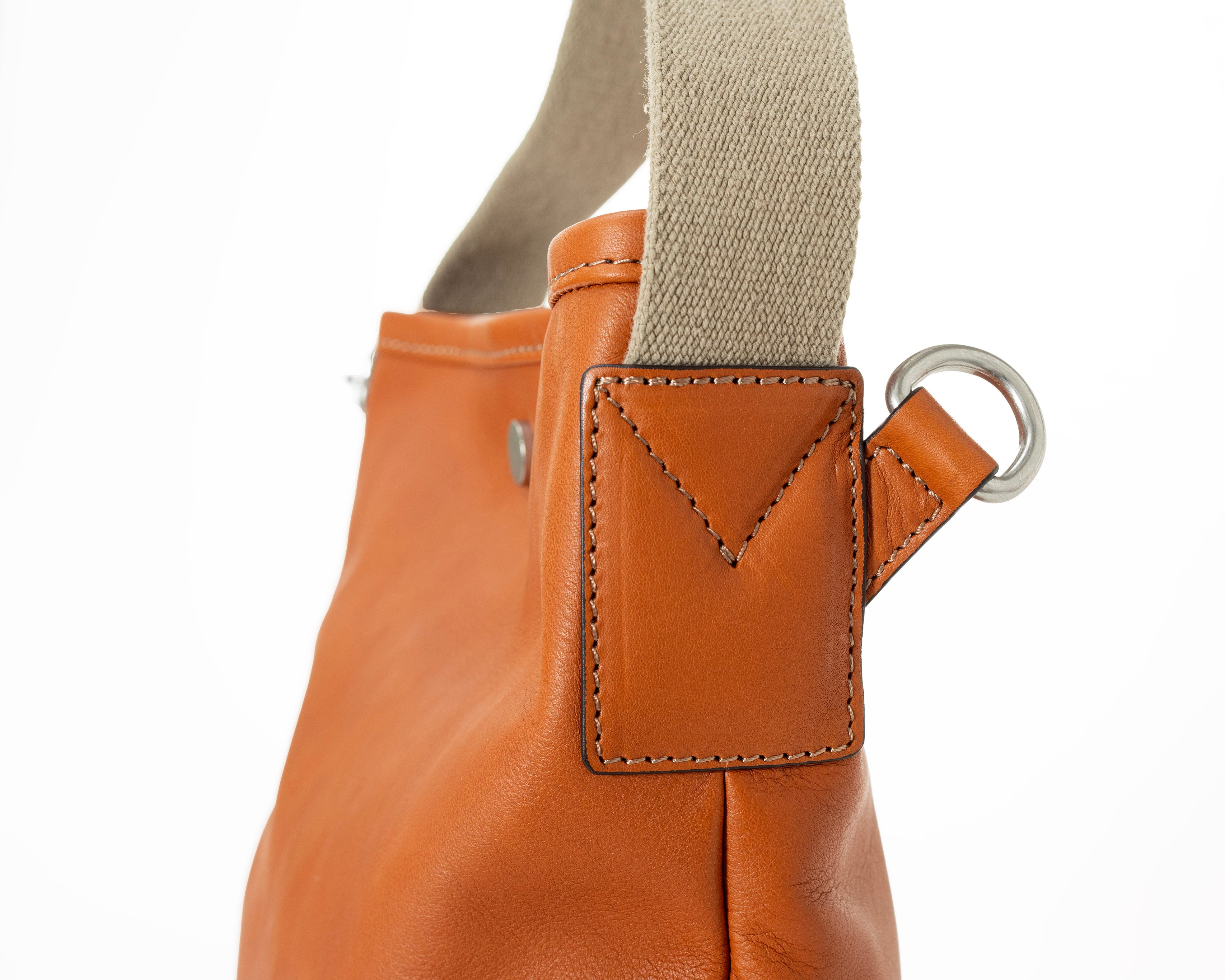 柔らかく自然な風合いのレザー本体に、ハンドルに使用しているストーンウォッシュ加工した厚手の綿テープが絶妙にマッチし、程よいヴィンテージ感を醸しています。